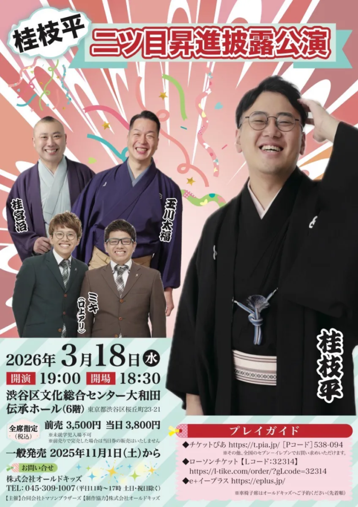 そして、3月18日には桂枝平 二ツ目昇進披露公演が開催されます。